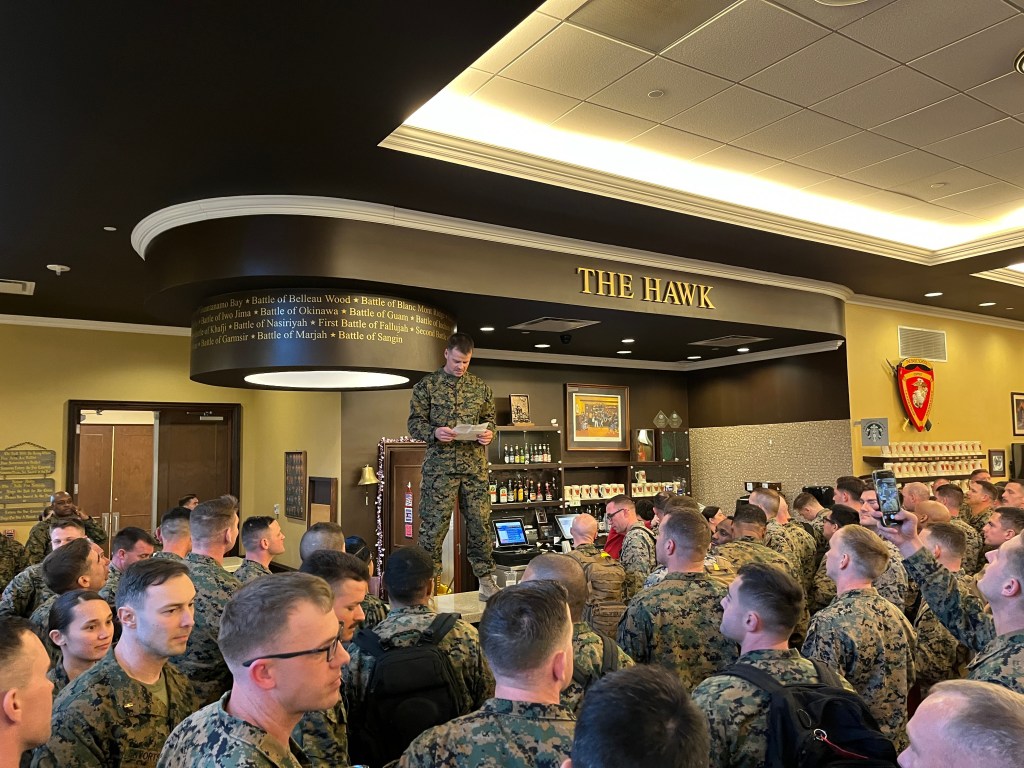 Week five included a guest speaker, learning about our weapons systems, orienting through the endurance course, and a swim qualification. The rate at which we move causes me to forget which week we did what. For example, something cool we did last week (week four) was our Lamp Lighting ceremony. This event is a tradition which officially announces the presence of the Warrant Officers at The Basic School (TBS). The lamp will always be lit inside the “Hawk” (Officer’s Club) when a Warrant Officer is present. The ceremony itself included the passing of the lamp between all Warrant Officers until we arrived at the Hawk (the lamp’s home) to celebrate and socialize.